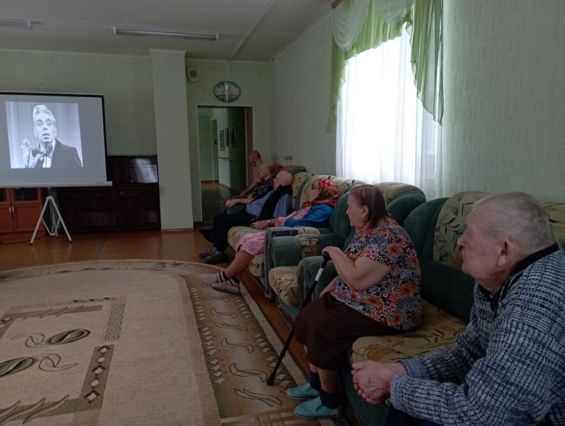 В отделении временного проживания граждан пожилого возраста и инвалидов Кинешемского комплексного центра социального обслуживания населения состоялся просмотр виртуального мероприятия "Мы с вами где-то встречались", подготовленного отделом внестационарного обслуживания.