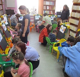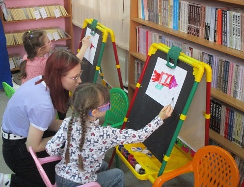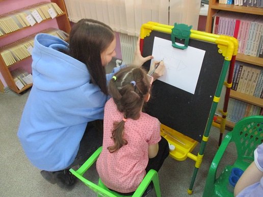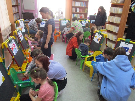 Юные художники отправились к мольбертам и принялись за творческую работу: все рисовали ракеты с Белкой и Стрелкой при умелой помощи студентов отряда «Волонтёры добра» Художественного училища им. М.И. Малютина. И вновь общались с Флаем, получив в подарок от Светланы Александровны разноцветные фигурки собак из воздушных шаров, собственноручно ею изготовленных. В хорошем настроении, с позитивными эмоциями и рисунками дети отправились в детский сад, чтобы поделиться с друзьями радостью от посещения библиотеки в День Космонавтики и новых удивительных встреч.