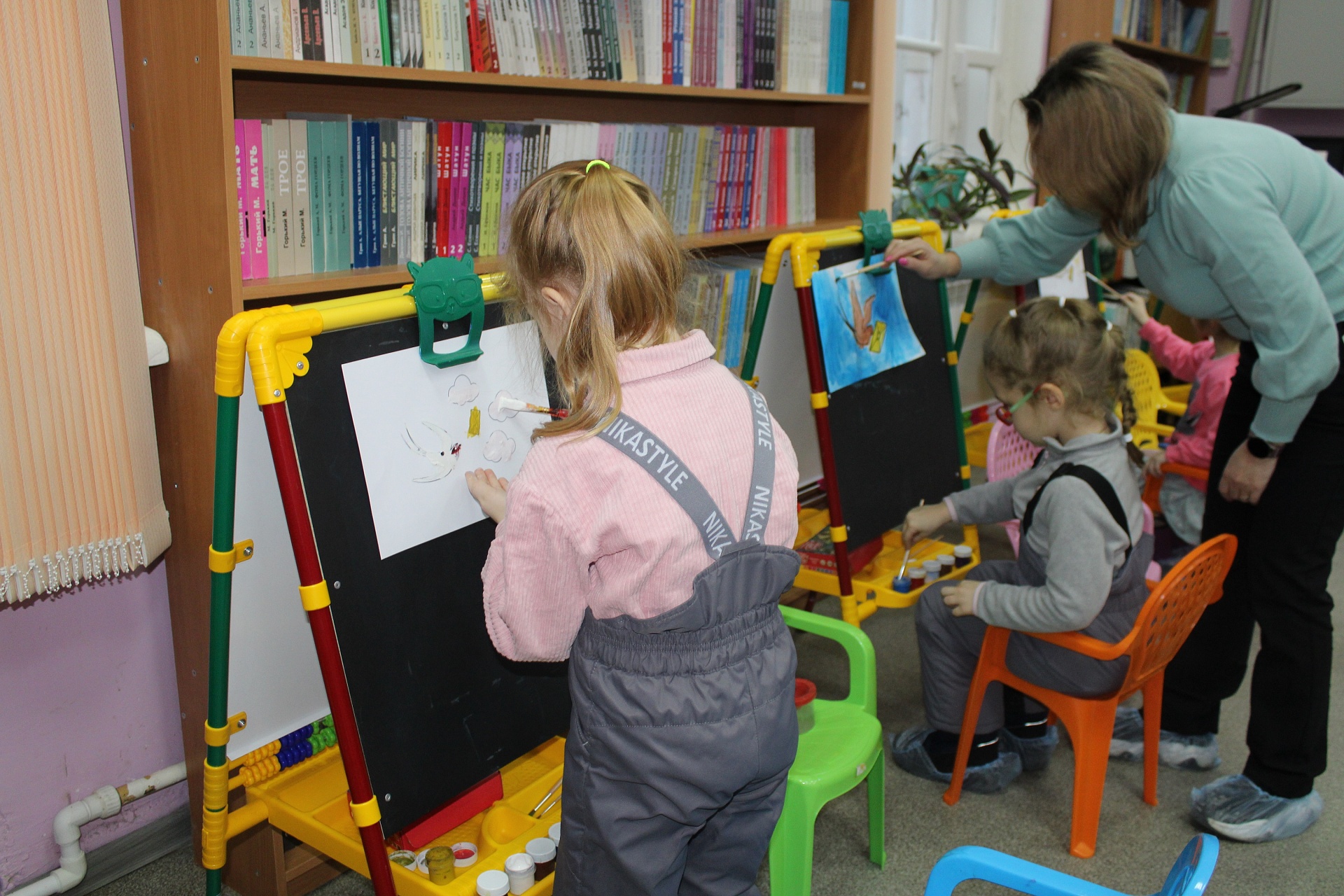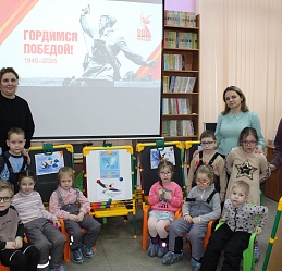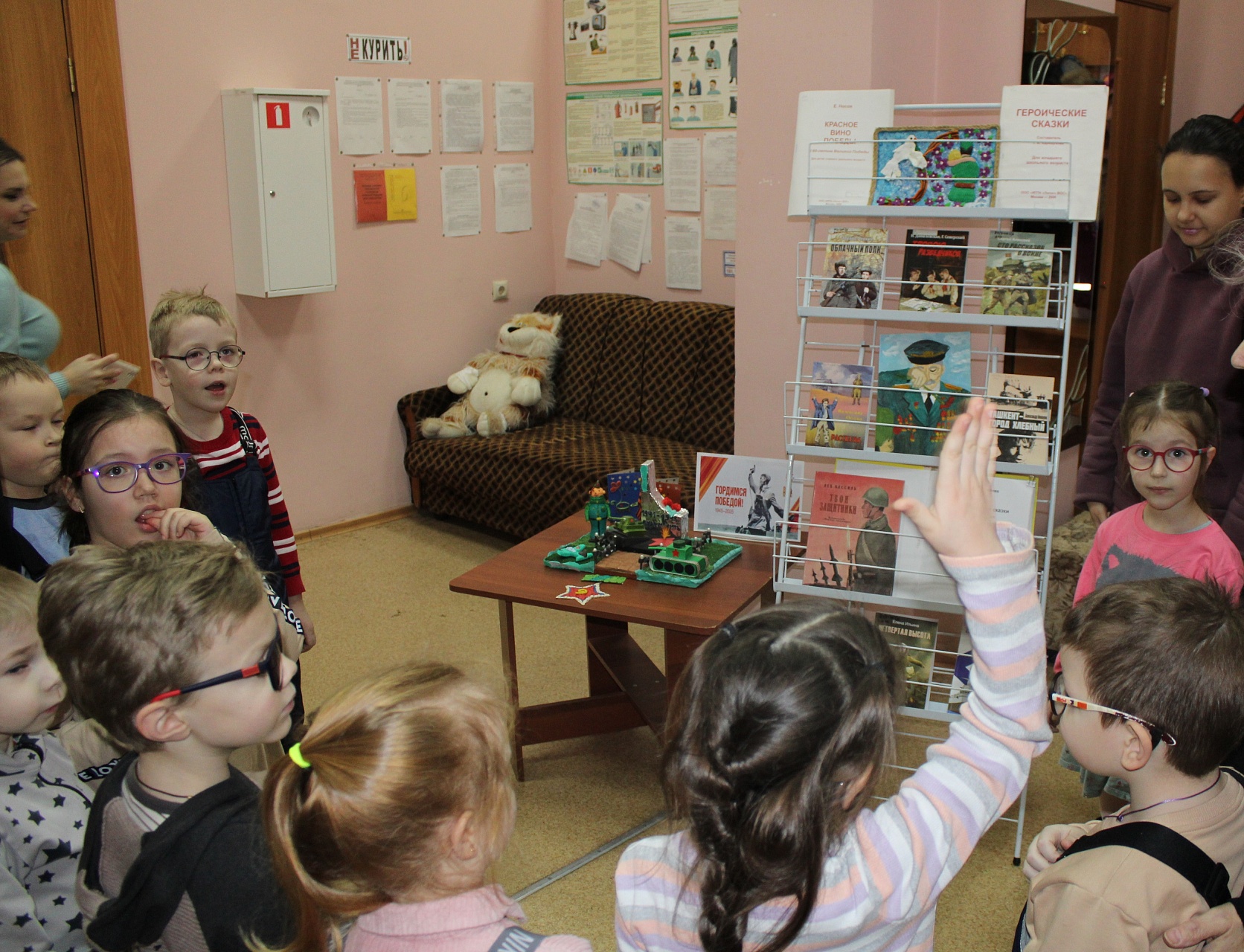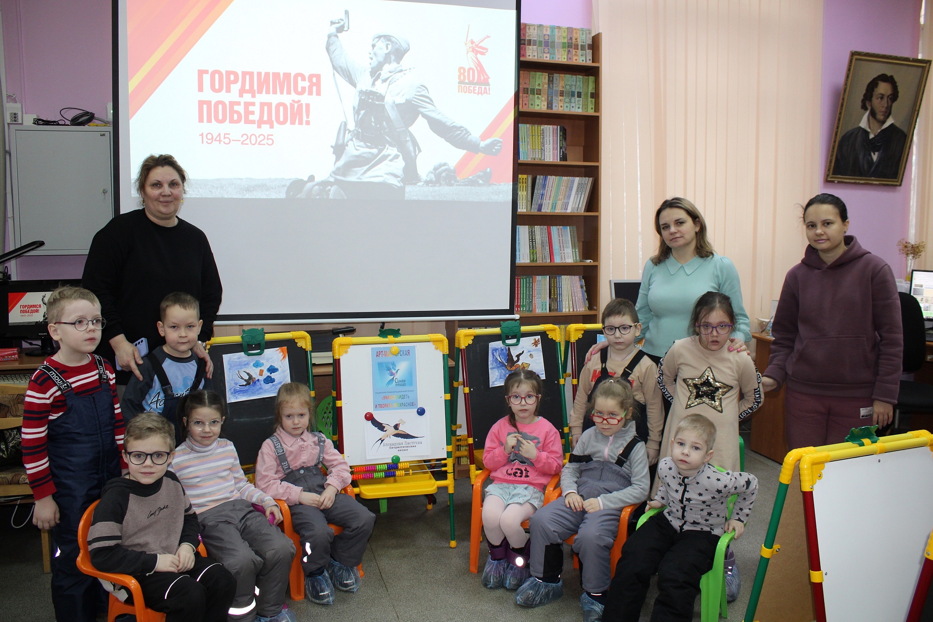 Первое занятие в Арт-мастерской «Синяя птица» в наступившем 2025 году, состоявшееся 31 января с участием воспитанников группы «Аистёнок» детского сада компенсирующего вида № 57, началось с беседы у книжно-иллюстративной выставки. Среди её экспонатов ̶ книжные издания детской литературы о Великой Отечественной войне, рисунки и поделки юных читателей библиотеки.