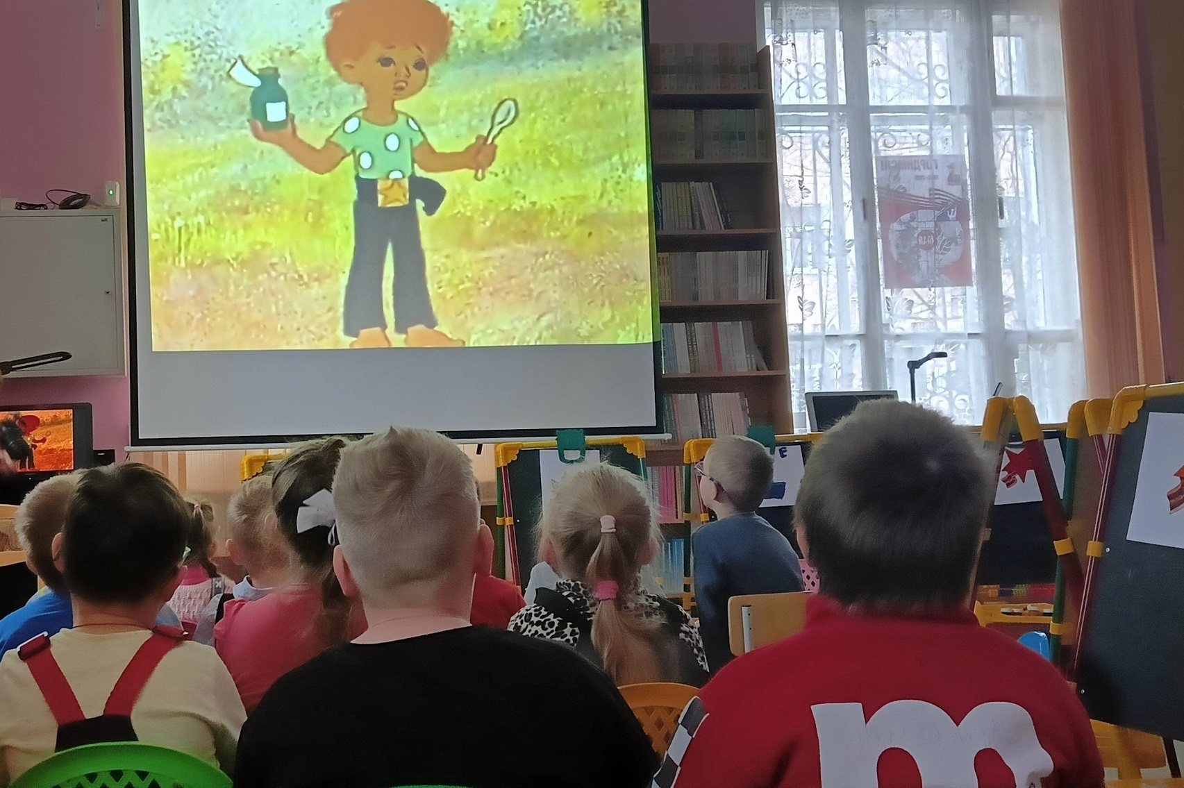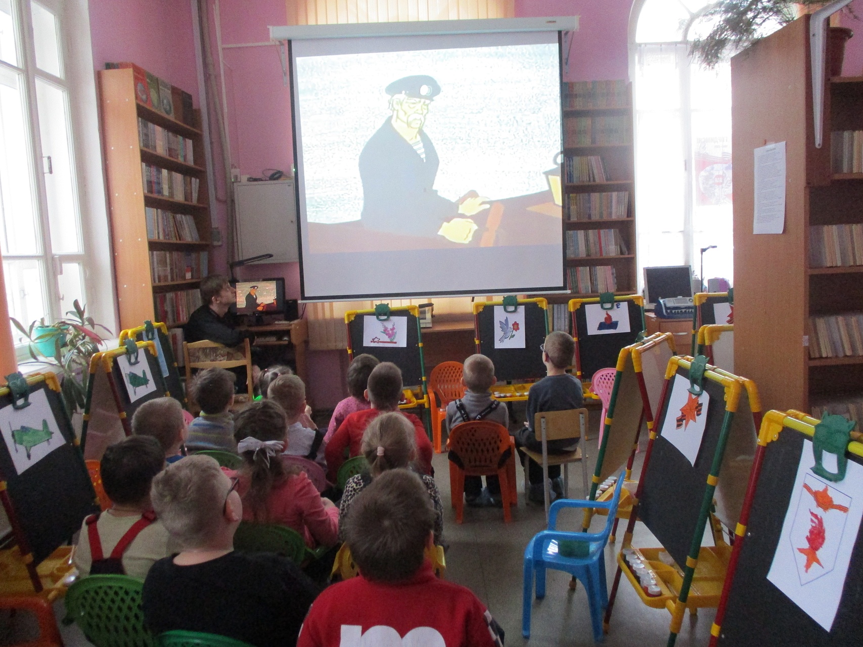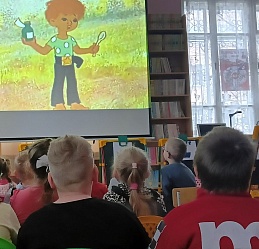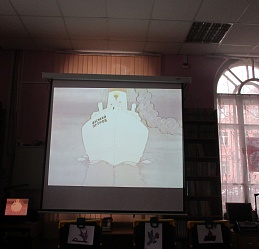 В завершении посмотрели мультипликационный фильм «Василёк» о мальчике, отправившемся на поиски погибшего на войне дедушки Василия Петрова.
