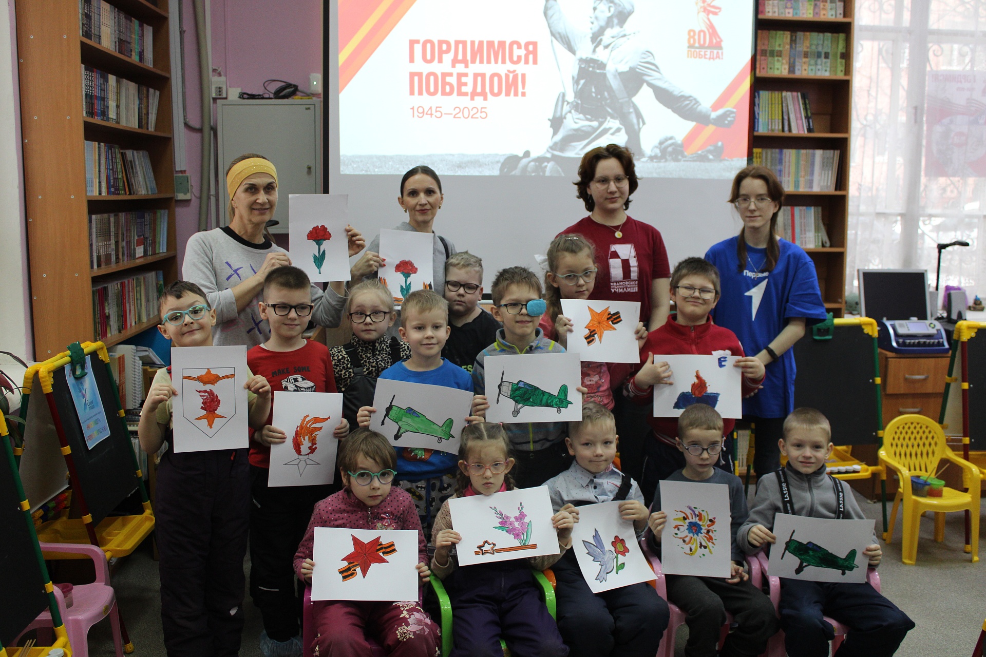 Библиотека благодарит Ирину Анатольевну Авлиеву, студентов-волонтёров и педагогов детского сада, многолетнего социального партнёра ИОСБС, за помощь в проведении такого важного для подрастающего поколения патриотического занятия в АРТ-мастерской «Синяя птица».