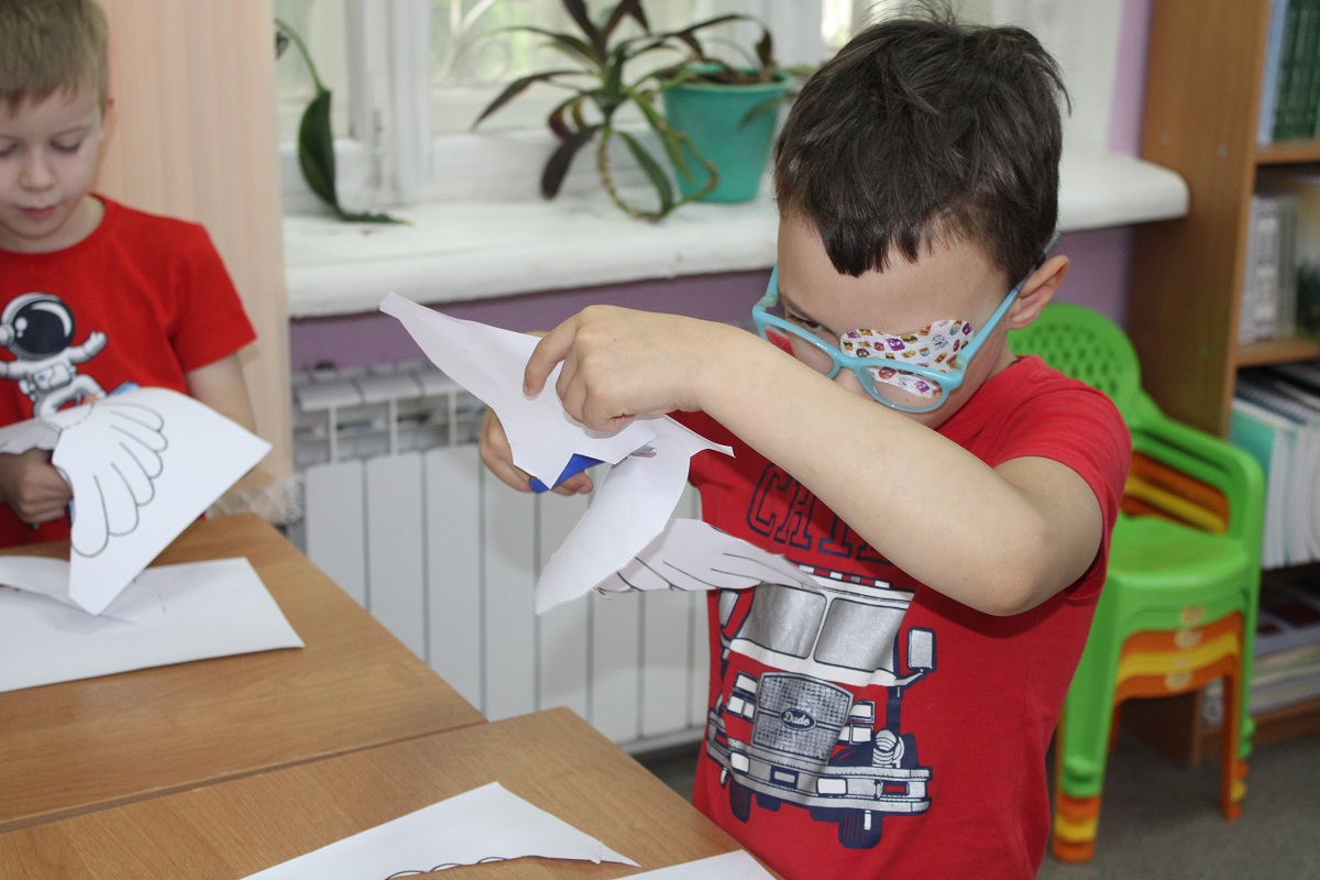 На занятии в Арт-мастерской «Синяя птица» 2 июня для группы воспитанников детского сада компенсирующего вида № 57 состоялся познавательный мастер-класс «Пусть на всей планете радуются дети». Из беседы-общения о голубе, ставшем символом мира, проиллюстрированной демонстрацией фото и видео материалов, дошкольники узнали об особенностях жизни этой стремительной, легкокрылой птицы; её почтовой службе в годы Великой Отечественной войны, запечатлённой в памятнике «Голуби Мира» (г. Ангарск).