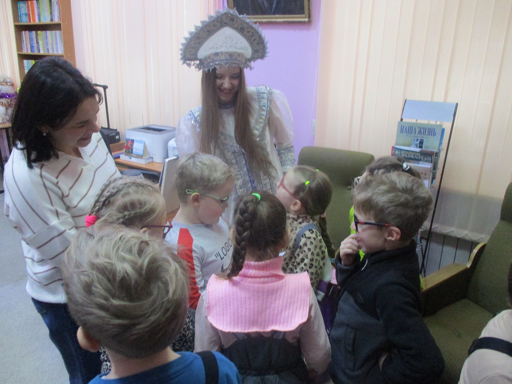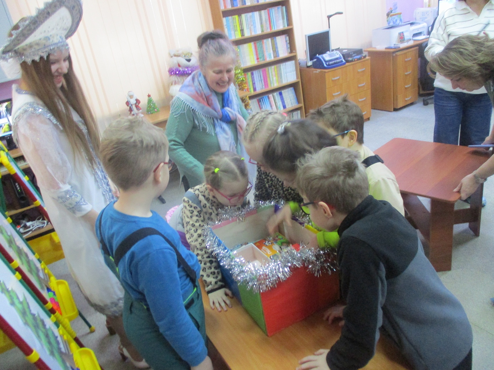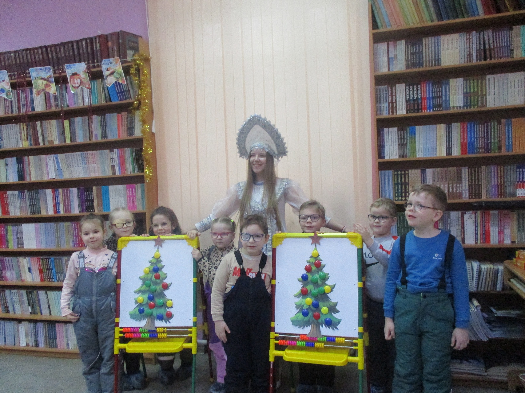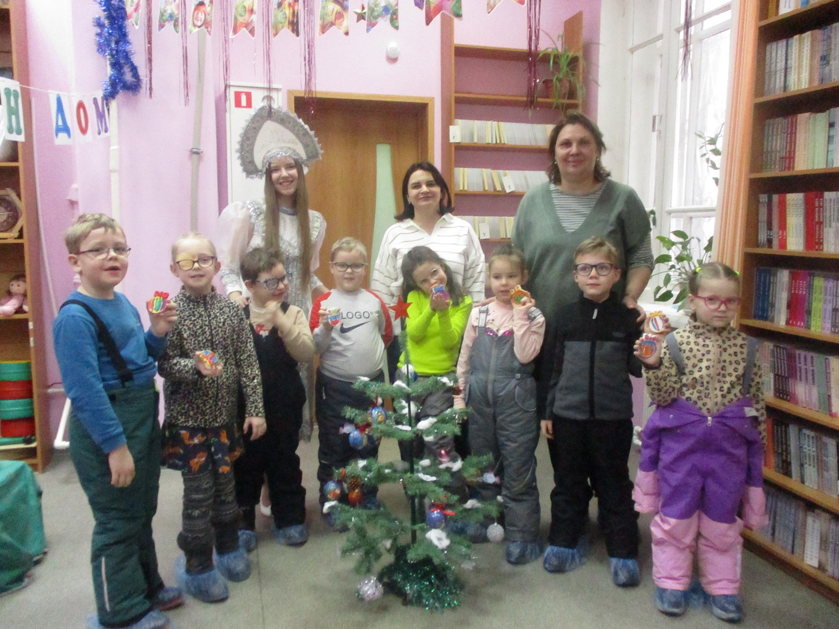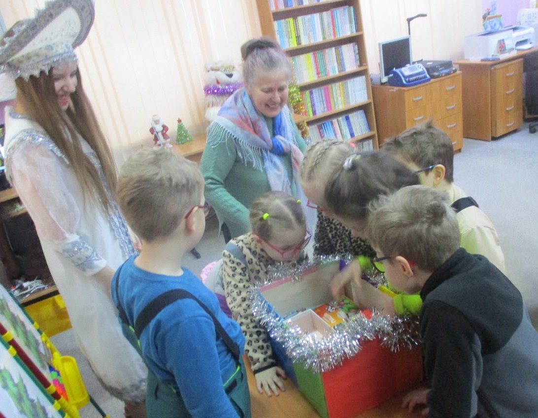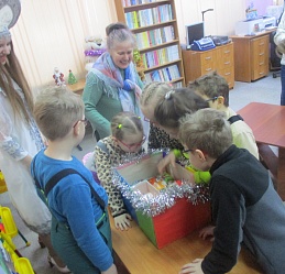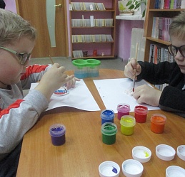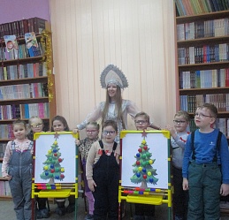 Очередной мастер-класс по росписи новогодних игрушек состоялся 16 декабря на занятии в Арт-мастерской «Синяя птица» с участием воспитанников подготовительной группы детского сада компенсирующего вида № 57. Гостей встретил ученый кот Мурлыка с известием о том, что Дед Мороз, побывавший в библиотеке накануне, решил устроить для них испытание, спрятав кисточки и краски. Поиски юных художников вместе со Снегурочкой увенчались успехом: все конверты с загадками обнаружены, и главное – праздничная коробка со всем необходимым для рисования, в процессе которого будущие новогодние игрушки на гипсовых заготовках с рельефным изображением ёлочных шаров засверкали разнообразием цветочной палитры. Ученики-дошколята при необходимой помощи Снегурочки, с ролью которой прекрасно справилась художник, педагог дополнительного образования Полина Коптелова, работали талантливо и старательно. Занятие продолжилось выполнением командных заданий: украшением новогодней зелёной красавицы яркими шарами-магнитами и игрой в снежки. Встреча в Арт-мастерской завершилась хороводом под традиционную песню про ёлочку, которая «нарядная на праздник к нам пришла».