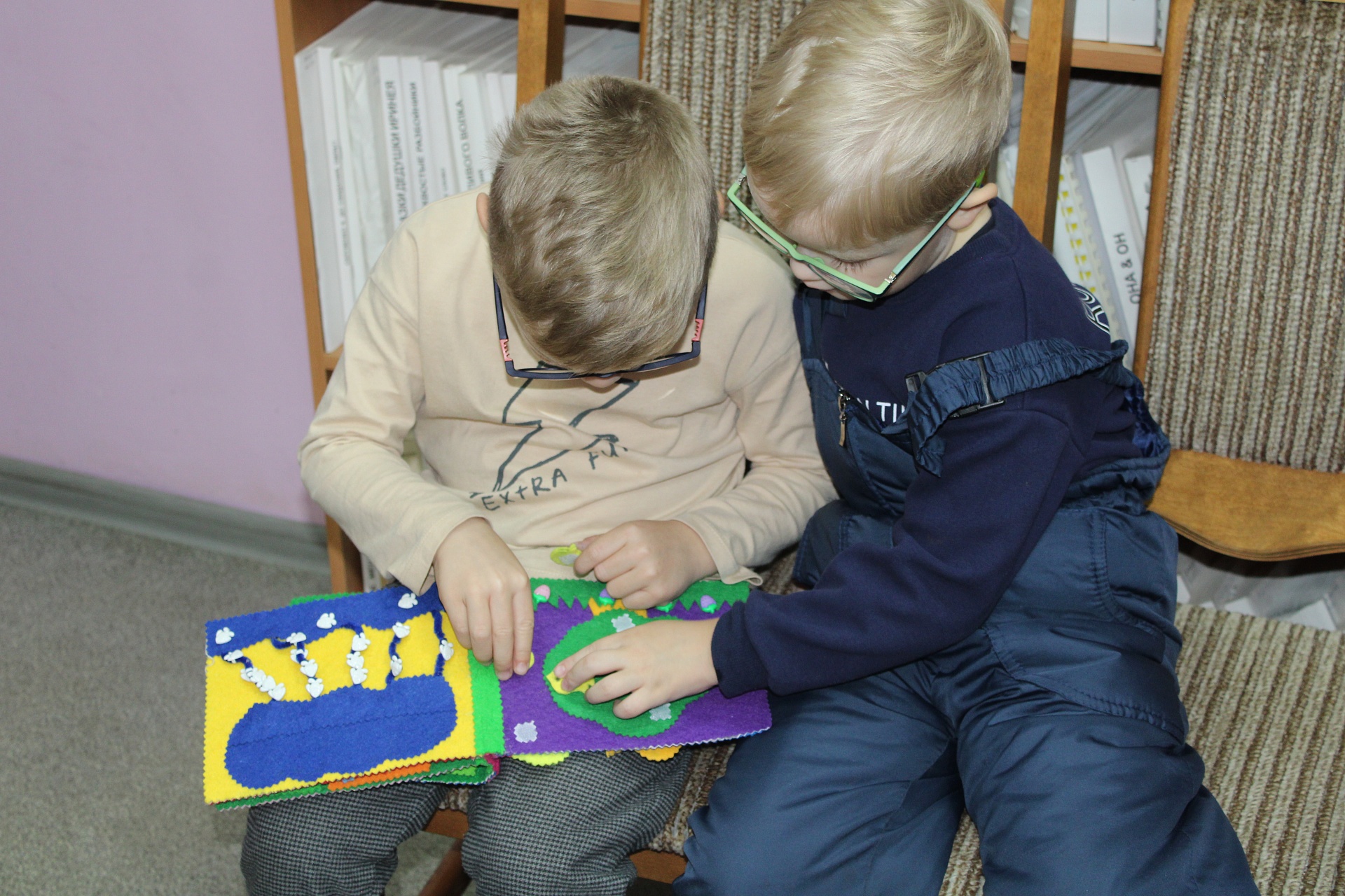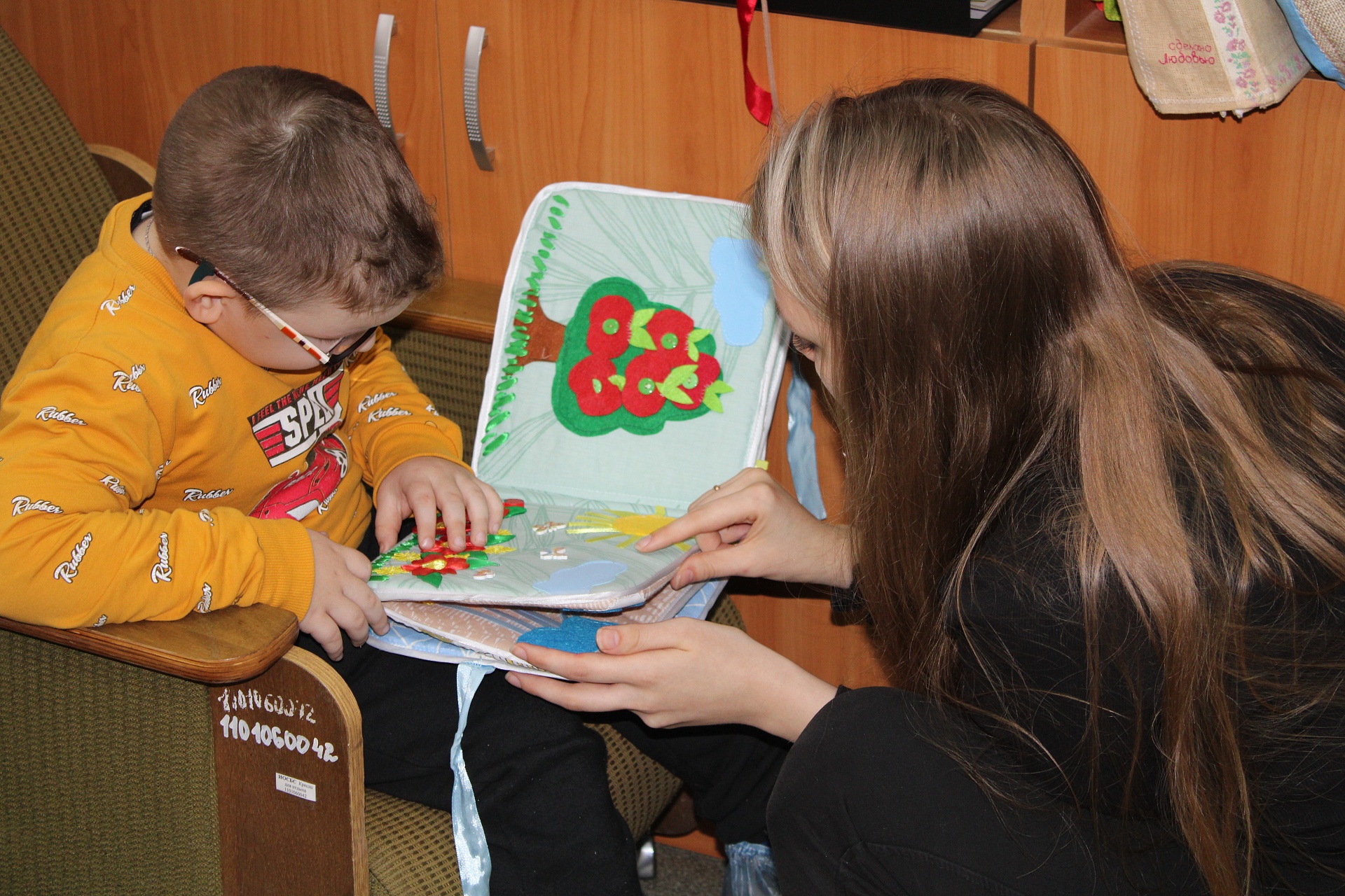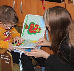 Привлекли внимание детей и рукодельные тактильные книги, страницы которых они с увлечением «прочитали», выполняя задания на каждой просмотренной странице.