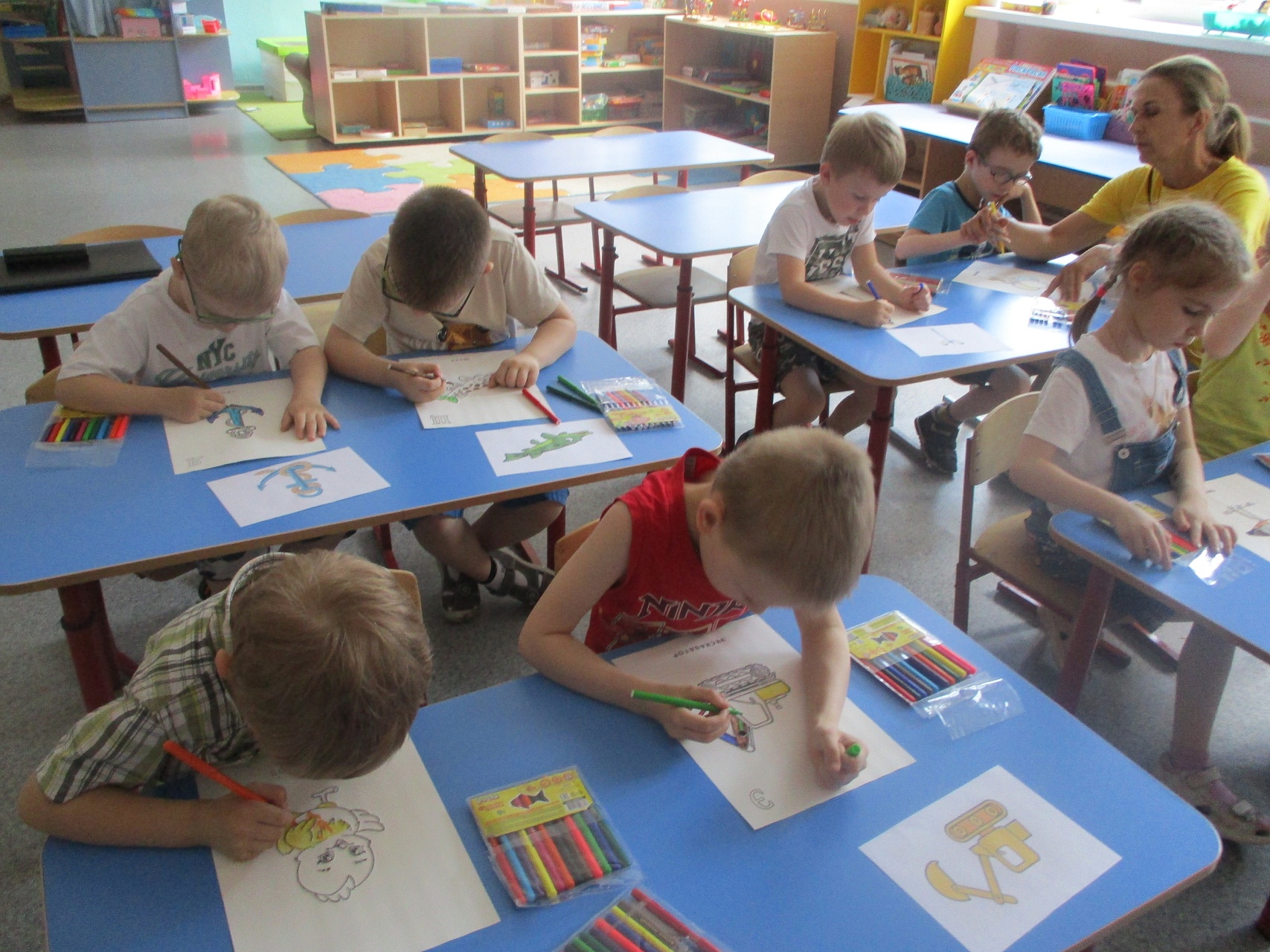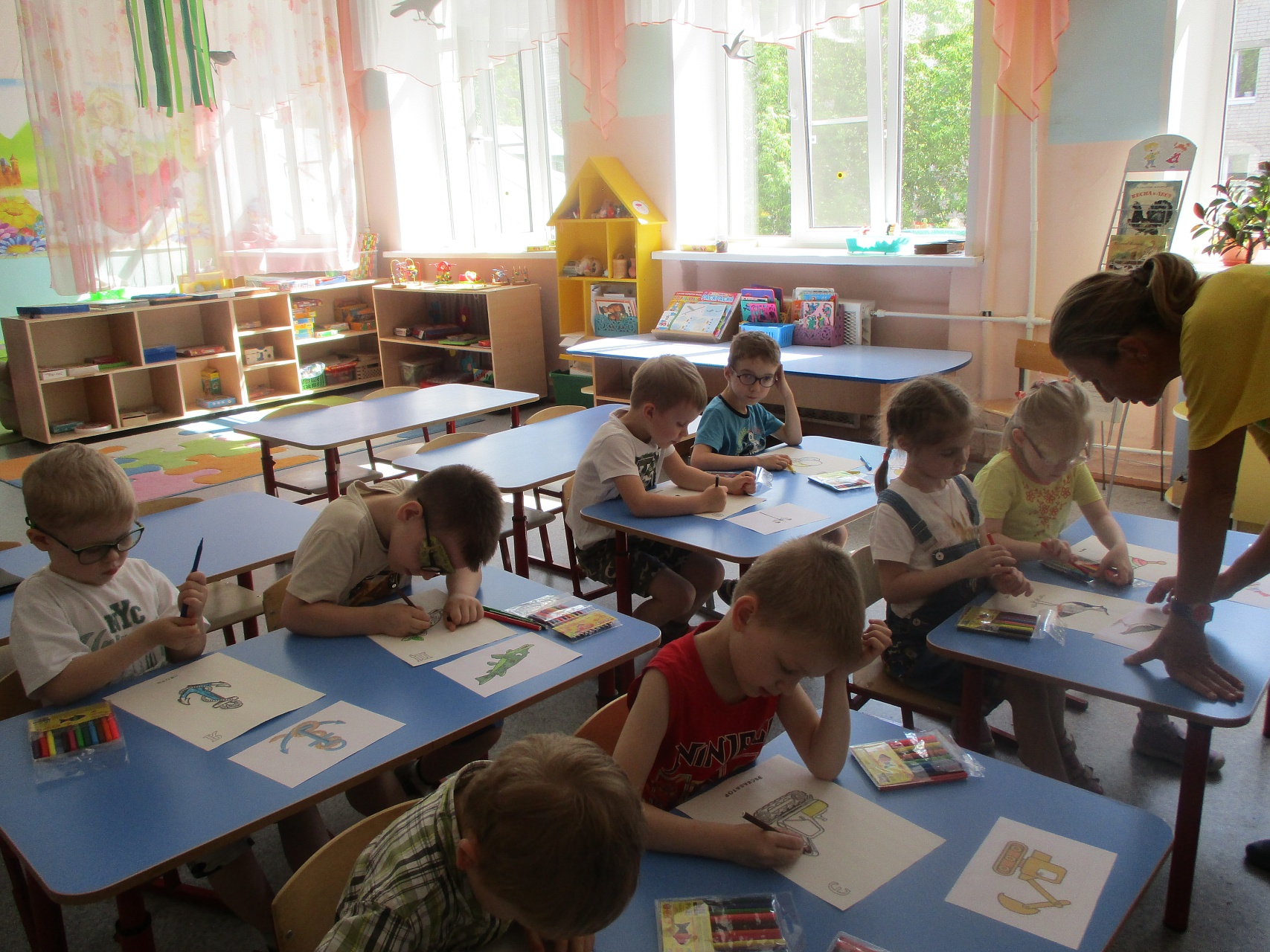 В рамках проекта 3 июня в детском саду компенсирующего вида № 57 состоялось выездное занятие Арт-мастерской. Воспитанники старшей группы готовили последние страницы книги с контурными изображениями. Впереди – работа над составлением сборника, в который войдут также и стихотворения на каждый предмет–иллюстрацию. Стихи написаны талантливым человеком Волковой Ниной Николаевной, учителем-дефектологом детского сада компенсирующего вида № 146.