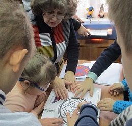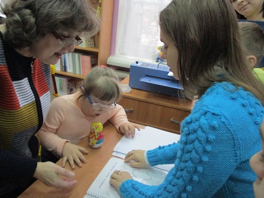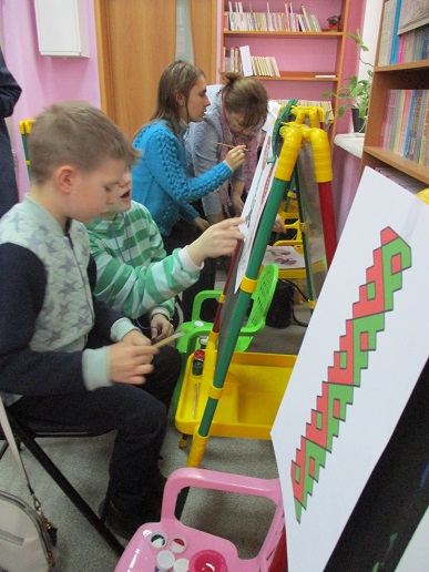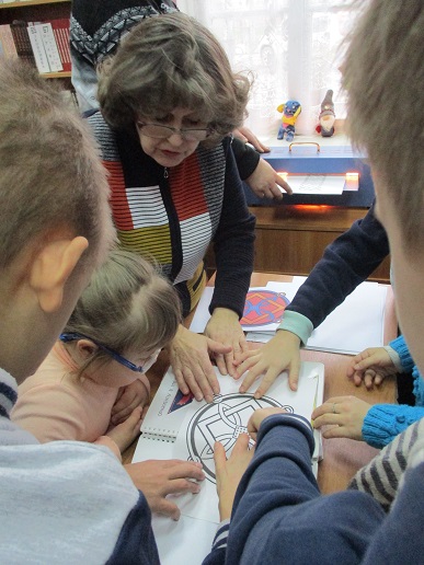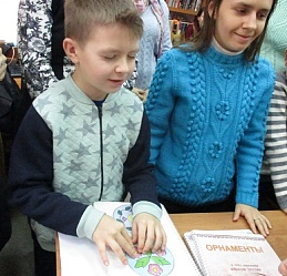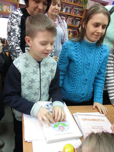Дошколята и школьники ознакомились с различными видами одного из древнейших искусств декоративного рисования – орнаментами на основе тифлопособия по изобразительному искусству из книжного фонда библиотеки. С помощью графических изображений орнаментов народов России юные читатели на мольбертах гуашью изобразили различные узоры русского, украинского народов, азиатского народов и народов Закавказья. Незрячим и слабовидящим детям помогали в этом студенты, будущие художники и родители. Дети увлеченно и старательно украшали рельефные орнаменты, выполненные на специальном нагревательном приборе. Завершив творческую часть встречи, с радостью сыграли в народную игру «Найди колечко» под руководством ведущего библиотекаря Шуйского филиала № 2 Татьяны Виноградовой, почитали стихи, посмотрели мультфильм «Камыр-батыр» по мотивам татарских сказок с тифлокомментированием, спели в хороводе «Пусть всегда будет солнце».