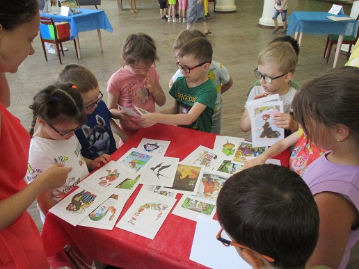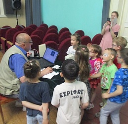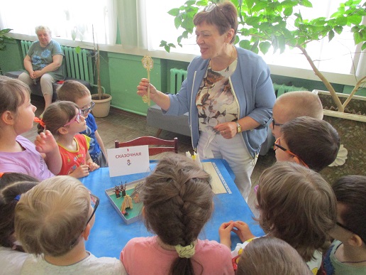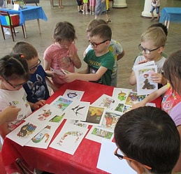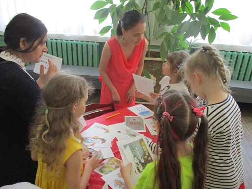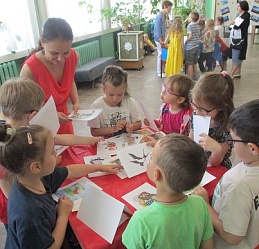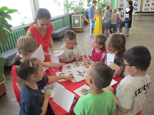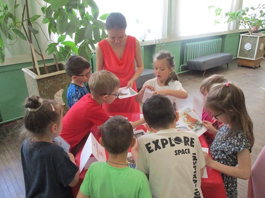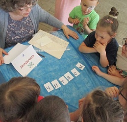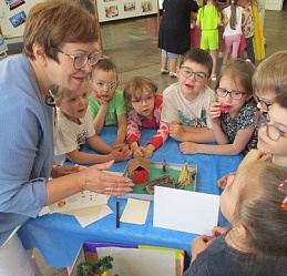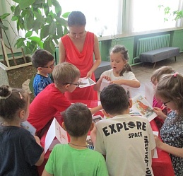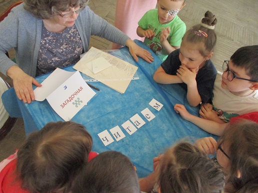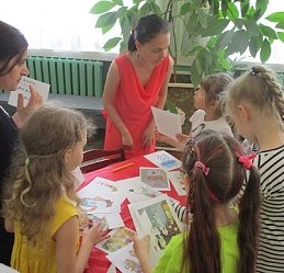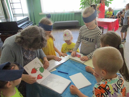 Команды «Стрела», «Молния» и «Оленёнок» воспитанников детских садов компенсирующего вида № 57 и №146 приняли участие в библиотечной квест-игре «Книги читаем вместе!», состоявшейся 27 июня на базе Ивановской областной организации ВОС. Каждая команда получила маршрутный лист и в ходе игры посетила 6 станций, получая на каждой буквы итогового квестового предложения. На «Сказочной» дети с помощью поделок из волшебного сундучка определяли литературное произведение и его героев. Станция «Головоломка» увлекла собиранием пазлов по русским народным сказкам. На станции «Распознавайка» юные читатели с повязкой на глазах тактильно знакомились с книжными тифопособиями, станция же «Соединялка» предложила собрать пары картинок литературных персонажей детской литературы. «Загадочная станция» потребовала от игроков знаний русских народных сказок и произведений отечественных и зарубежных авторов. Участники игры справились и с заданиями станции «Музыкальная», где угадывали книжных героев по куплету песен из мультфильмов.