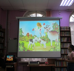 Нашими гостями 14 августа стали воспитанники и педагоги детского сада компенсирующего вида № 57, чтобы в ходе библиотечного урока «Твои соседи по планете: отгадаем, книжку почитаем» не только отгадать загадки о братьях наших меньших (диких и домашних животных, морских обитателях и птицах); вспомнить русские народные сказки с плутовкой-лисой, серым волком и зайкой-трусишкой; но и перелистать страницы книжного издания Благотворительного фонда « Иллюстрированные книжки для маленьких слепых детей» - «Мешок яблок» по сказке Владимира Сутеева. «Волшебная» палочка и дружные слова заклинания «Крибле! Крабле! Бумс!» оживили героев сказки: дети внимательно смотрели фрагменты мультфильма о приключениях папы-Зайца, эмоционально реагируя на происходящие события и активно участвуя в обсуждении просмотренного. По завершении знакомства с замечательной поучительной сказкой В. Сутеева, дружно пришли к выводу о том, что бескорыстная доброта главного героя позволила его зайчатам получить много подарков от лесных жителей.
