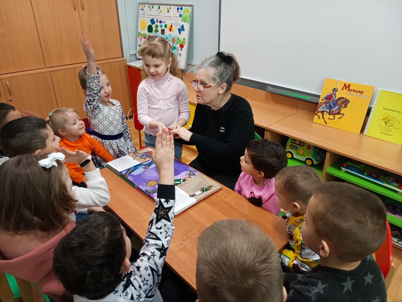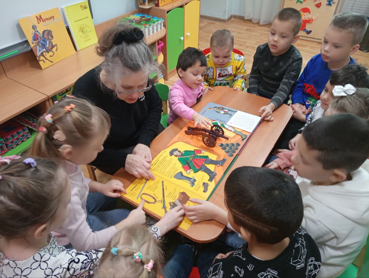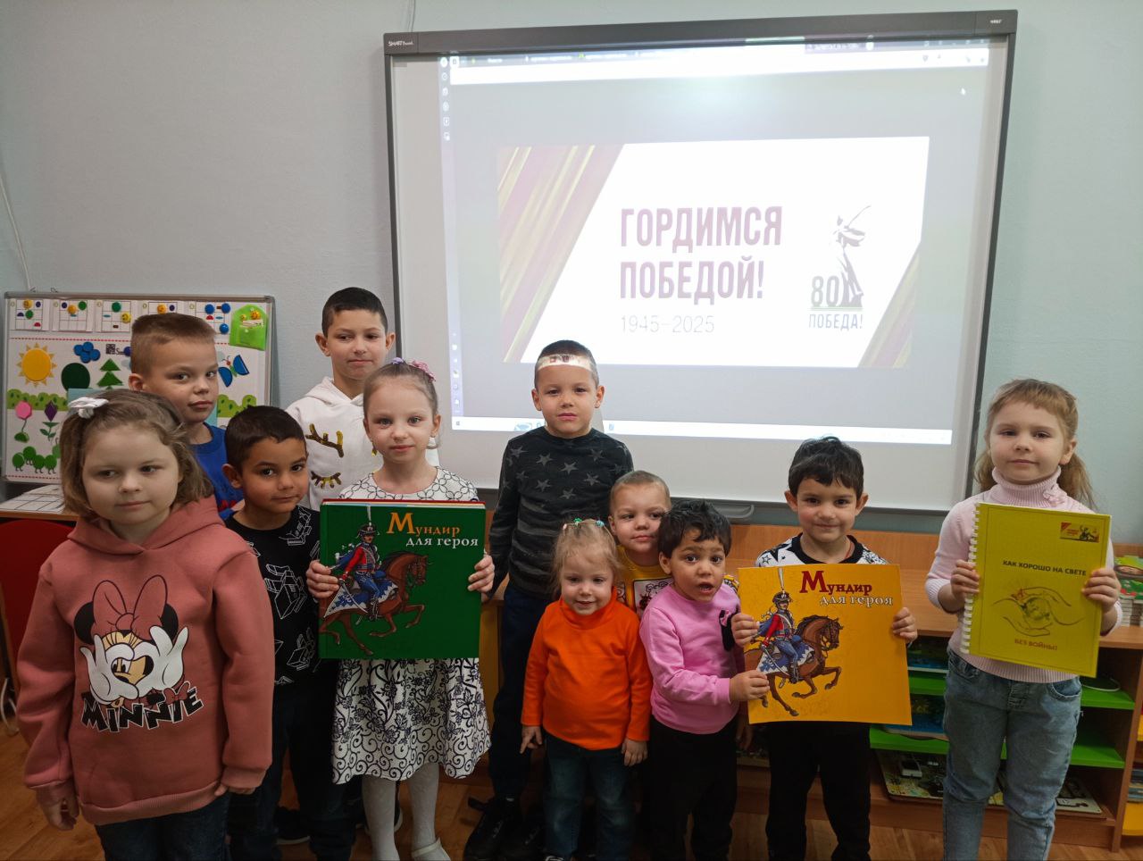 Книга-экскурсия «Мундир для героя», изданная Благотворительным фондом имени Александра Дугина «Иллюстрированные книжки для маленьких слепых детей» гостила 18 февраля в Ивановском специальном (коррекционном) детском доме «Солнышко». Дети прочитали её страницы в ходе адаптированного библиоурока «От Руси былинной до родной Отчизны»: им были интересны и яркие подвижные иллюстрации, и красочные костюмы, тактильные изображения вооружения русских воинов от далёкого прошлого до будущего. Ребята также активно отвечали на вопросы по иллюстрациям стихотворного сборника «Как хорошо на свете без войны!», изданного библиотекой в помощь подготовке творческих работ в рамках областного фестиваля «Мир важней всего на свете».