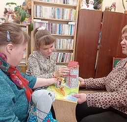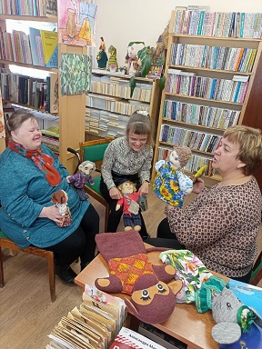С удовольствием примерили на себя роли сказочных героев. С помощью кукол, изготовленных читателем библиотеки И.Г.Макаровой, разыграли сказку «По щучьему велению», сами придумали сюжет для сказки «Два зайчонка».