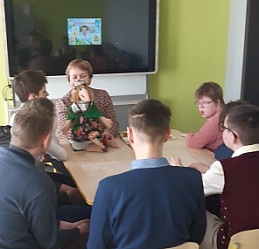 В рамках подготовки к YI областному фестивалю детского творчества «Путешествие в «Тилимилитрямдию» воспитанники коррекционной школы-интерната г. Кинешма 20 марта приняли участие в библиотечном уроке «В гостях у Сергея Козлова».