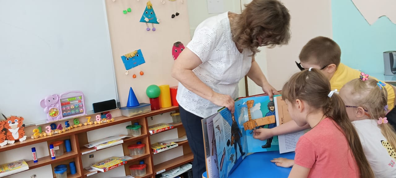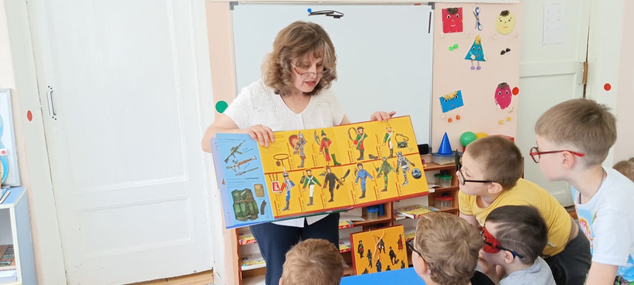 6 июня дошкольники детского сада компенсирующего вида № 57 (г. Иваново) в ходе библиотечного урока «Времена бывают не простые/ И военный всегда на посту» с интересом «прочитали» её страницы, благодаря ярким иллюстрациям, тактильным и подвижными элементам узнали о защитниках родной страны, их военной форме и вооружении в разные периоды её развития.