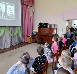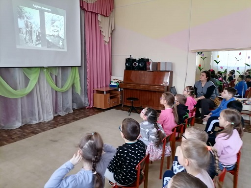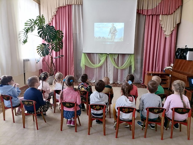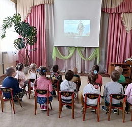 Участниками просмотра библиоурока «Наши деды – славные победы» стали и воспитанники групп «Аистёнок» и «Улыбка» детского сада компенсирующего вида № 57 (г. Иваново). В программе библиоурока содержался рассказ о богатырях земли русской, Красной Армии и Кибальчише с мальчишами, юных героя Великой Отечественной войны.