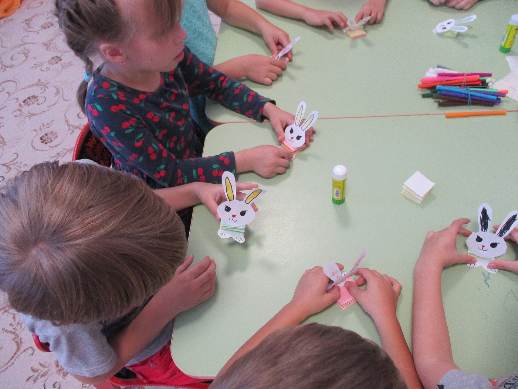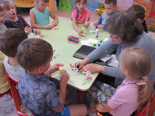 Библиоурок начался с изучения карты России на первой странице книги «Таёжные сказки». Внимательно прослушав стихотворную сказку, которую озвучил «волшебный карандаш», дети активно обсудили её содержание, объяснили, чем вызвано беспокойство зайца в связи с приходом весны. «Волшебный карандаш» пригласил детей и к загадкам о лесных жителях. Старательно дети трудились и над поделкой из бумаги главного героя сказки, получилась целая команда разноцветных зайчиков, но не в белой зимней шубке, поскольку каждому юному читателю хотелось создать своего сказочного лесного обитателя. Таким образом, чтение сказки с элементом совместного творчества и взаимопомощи позволит не только расширить детский кругозор, сделать притягательным процесс чтения, но и положительно скажется на эмоциональном здоровье ребёнка.