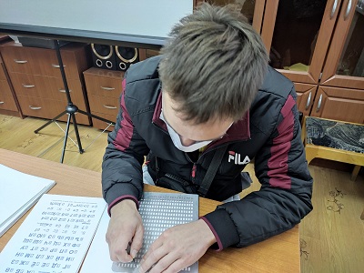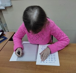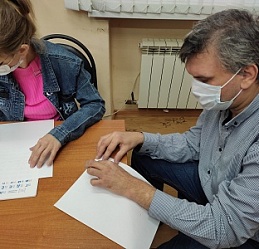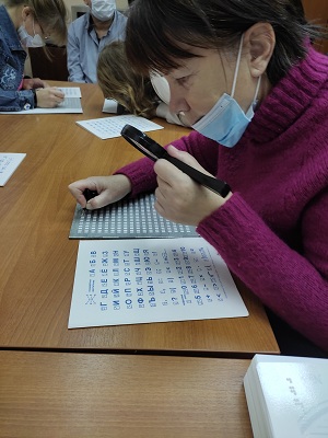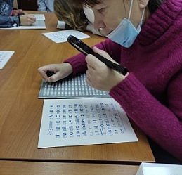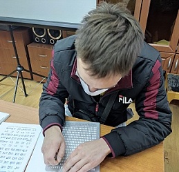 В завершение мероприятия молодые люди продемонстрировали свои способности: "читали" руками, писали рельефно-точечным шрифтом Брайля.