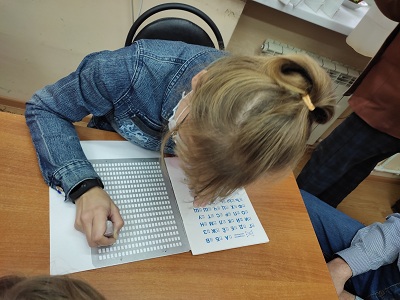 В рамках программы был показан фильм «Гении и злодеи. Луи Брайль. В поисках света», прозвучал рассказ о непростой жизни Луи Брайля и азбуке, разработанной им в возрасте 15 лет, которая представляла собой рельефно-точечный тактильный шрифт на основе шести точек, позволяющий передать все буквы и цифры, а также научные, математические и музыкальные символы. Участники встречи ознакомились с книгами, содержащими шрифт Брайля, узнали, как читают слепые люди. Особенно заинтересовала история незрячей девушки Уфимки, которая научилась читать шрифт Брайля губами, из-за недостаточной чувствительности пальцев.