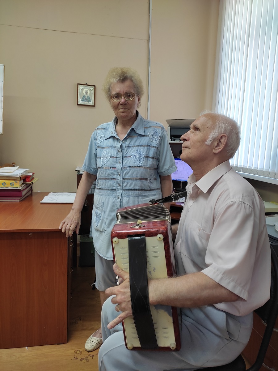 Яркие впечатления участники встречи получили от зажигательных припевок под задорные звуки гармони в исполнении Сергея Борисовича Сизова и Ларисы Валентиновны Михалиной.