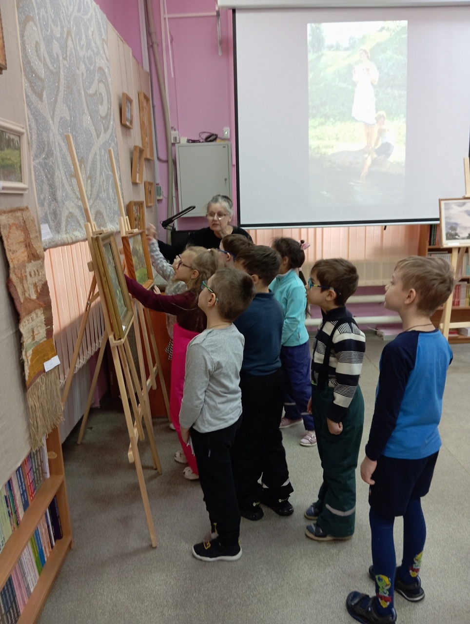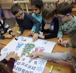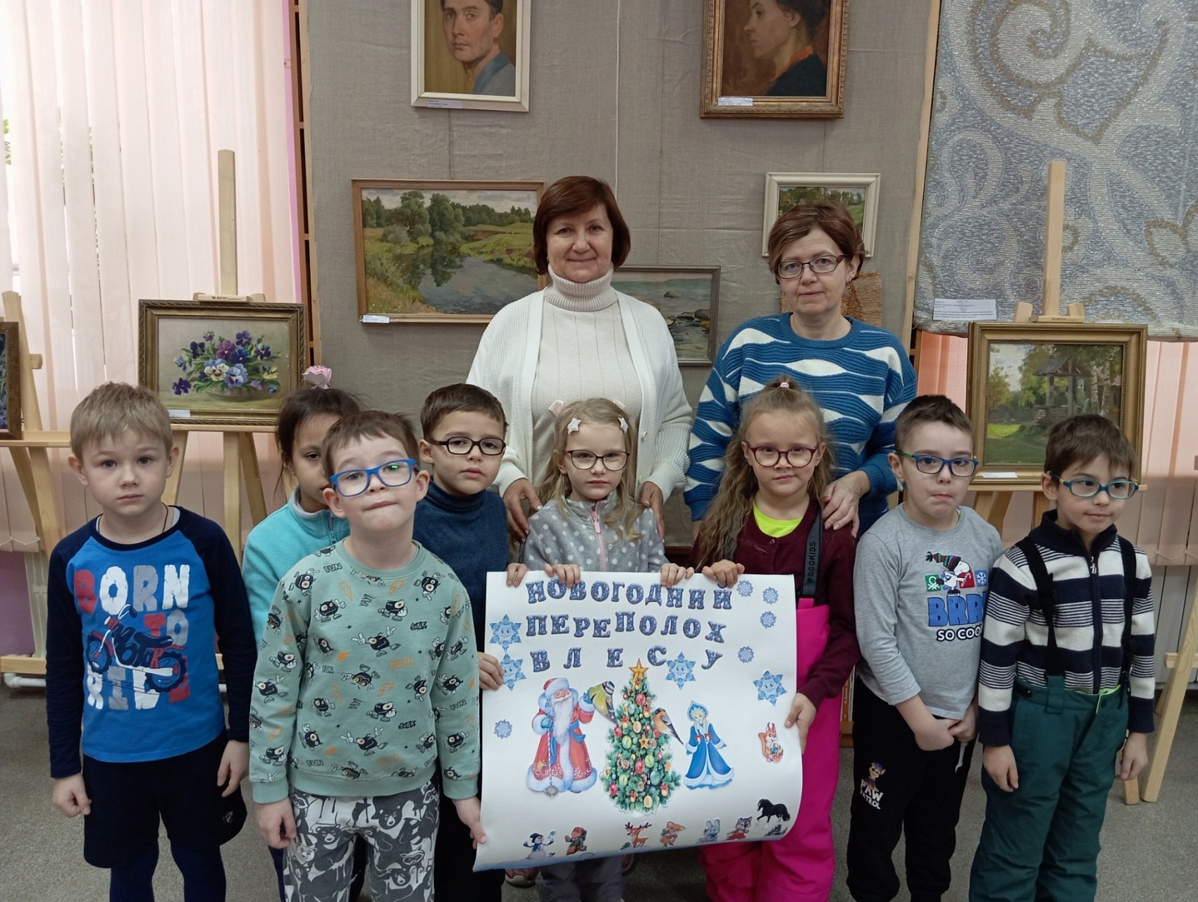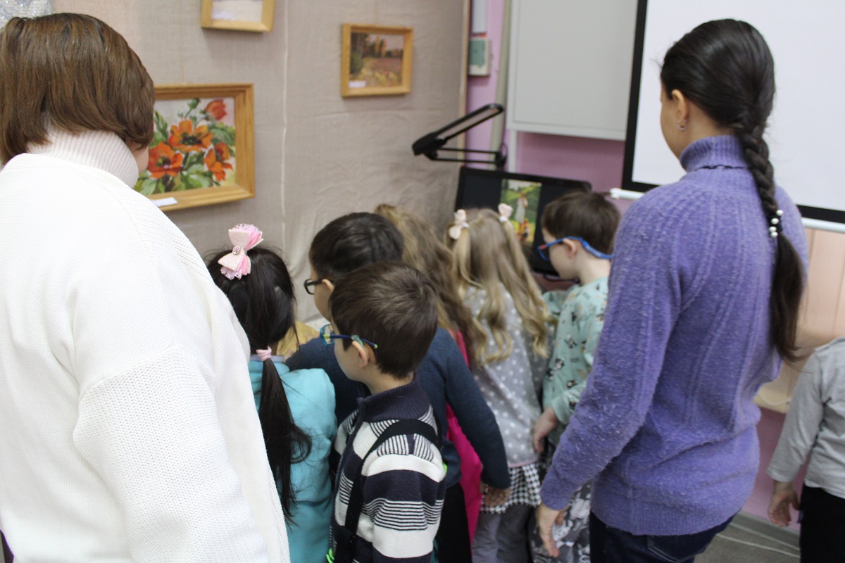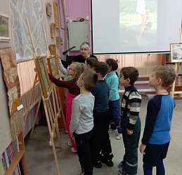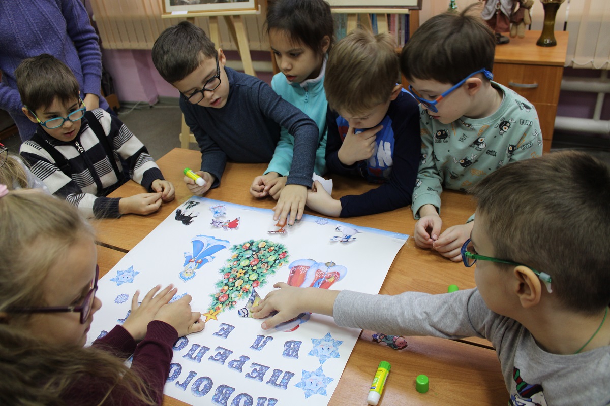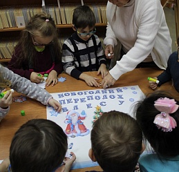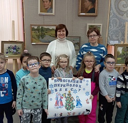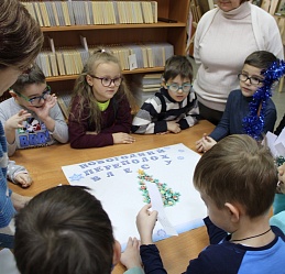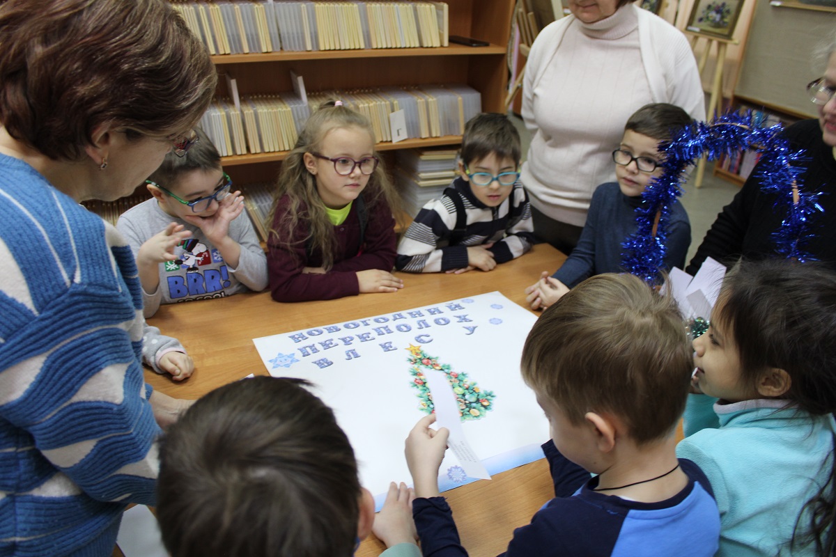В последний день работы мемориальной выставки «Мир искусства и красоты» ивановских художников Зиминых Ларисы Ивановны и Евгения Павловича в библиотеку пришли воспитанники подготовительной группы «Солнышко» детского сада № 146, чтобы не только совершить по ней экскурсию, но и в предновогодний декабрьский месяц в хороводе вспомнить любимую детьми и взрослыми песню о ёлочке, отгадать загадки из волшебной корзинки и создать новогодний коллаж в арт-мастерской «Синяя птица». Надеемся, что впечатления от встречи с искусством талантливых художников Зиминых, творческий процесс создания детьми вместе с педагогами коллажа «Новогодний переполох в лесу» надолго останутся в памяти воспитанников детского сада, многолетнего социального партнёра, с которым библиотеку связывают плодотворные дружеские отношения.