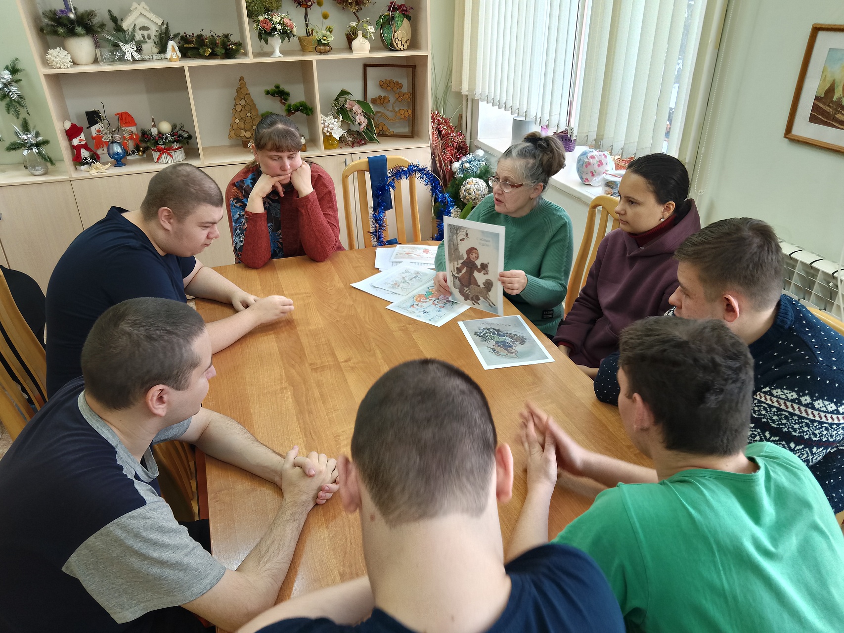 Декабрьское занятие в клубе «Парус надежды» (отделение социальной реабилитации молодых инвалидов Центра социальной помощи семье и детям «На Московской») было посвящено ели- зелёному символу новогодних праздников. Ребята успешно справились с весёлыми занимательными и познавательными конкурсами «Что зимой бывает?», «Песенные слова-потеряшки», «Что любит ёлочка-красавица», «Загадки из новогодней корзинки», были активны в общении при рассмотрении поздравительных новогодних открыток разных лет и с желанием трудились над раскрасками-открытками для своих родных и друзей. Расставаясь до встреч в следующем году, дружно обменялись подарками. На память о встрече сотрудникам библиотеки ребята подарили символические свечи рукотворного Дерева пожеланий, к изготовлению которого они приложили немало стараний.