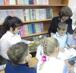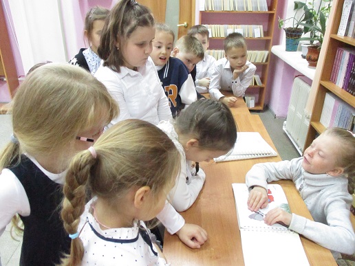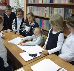 Занятия проводились на двух площадках в разных помещениях библиотеки, дети двумя группами попеременно общались с нашими читателями.