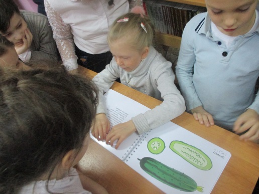 В ходе общения дети были активны в выполнении заданий, задавали вопросы, высказывая удивление, узнав о существовании такой уникальной библиотеки, где впервые встретились с такими уникальными читателями и узнали о некоторых их помощниках, делающих их жизнь полноценной и насыщенной.