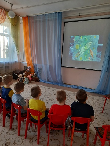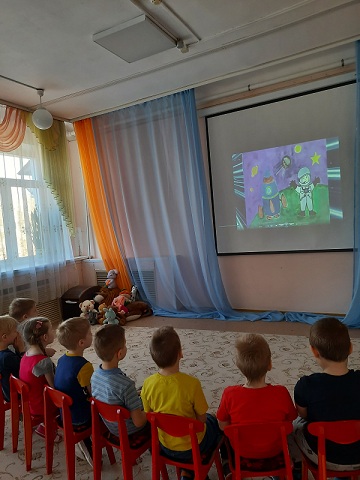 В детском саду компенсирующего вида № 61 (г. Иваново) состоялись просмотры виртуальных мероприятий, подготовленных библиотекой ко Дню космонавтики и авиации.