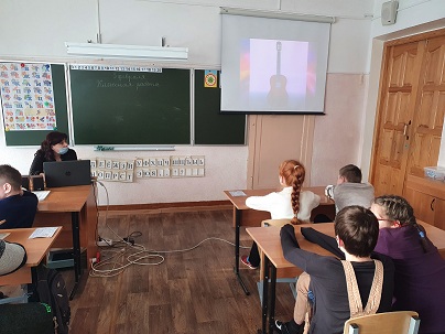 Воспитанники коррекционной школы-интерната г. Кинешма стали участниками просмотра очередного сюжета "Звени, гитара" Виртуального познавательного цикла "Музыкальная страна", подготовленного областной библиотекой для слепых. Ребята ознакомились с историей гитары, посмотрели фрагменты из мультипликационных фильмов, где звучит этот музыкальный инструмент.