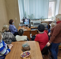Просмотр виртуального тематического сообщения "Опора во тьме", подготовленного отделом внестационарного обслуживания библиотеки в рамках Международного дня Белой трости, состоялся в Фурмановской местной организации ВОС.