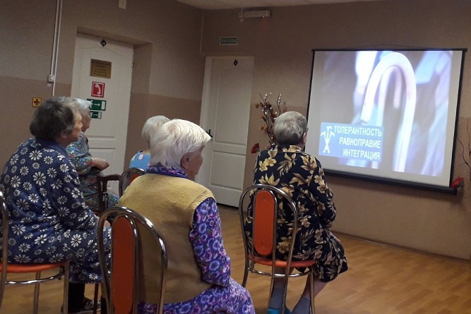 В рамках месячника «Белая трость» 22 октября в отделении временного проживания Наволокского комплексного центра социального обслуживания населения состоялся просмотр виртуального тематического сообщения «Опора во тьме». Мероприятие прошло в рамках соглашения о сотрудничестве с Ивановской областной специальной библиотекой для слепых.