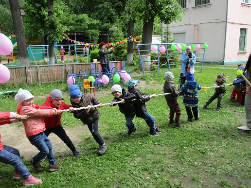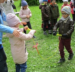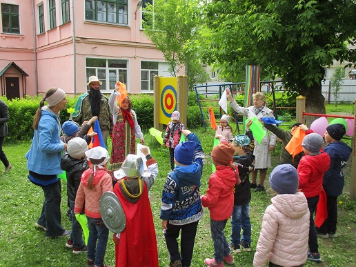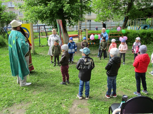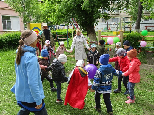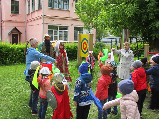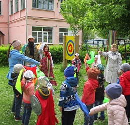 Необычайно весело прошла познавательно-игровая программа «Народные забавы», состоявшаяся на открытом воздухе 1 июня, в Международный день защиты детей, в ивановском детском саду компенсирующего вида № 57. В гости к воспитанникам старшей и подготовительной групп пришли сотрудники библиотеки, преобразившись в Бабушку Варвару и Старичка-Лесовичка, чтобы поиграть с ребятами в старинные народные игры.