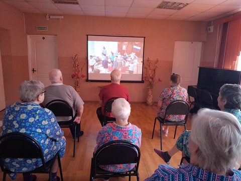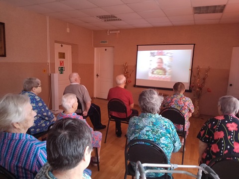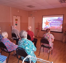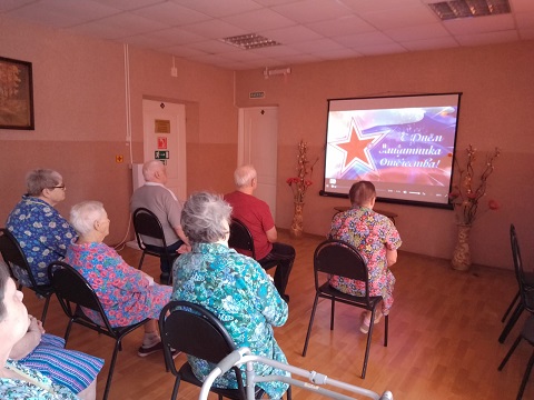 В Наволокском комплексном центре социального обслуживания населения в отделении временного проживания граждан пожилого возраста и инвалидов состоялся просмотр праздничного видеосюжета «Праздник Армии родной», подготовленного педагогами и воспитанниками старшей и подготовительной группы (отряд юных волонтеров «Семицветик») МБДОУ «Детский сад компенсирующего вида № 7» (г. Кинешма) совместно с Кинешемским филиалом №1.
