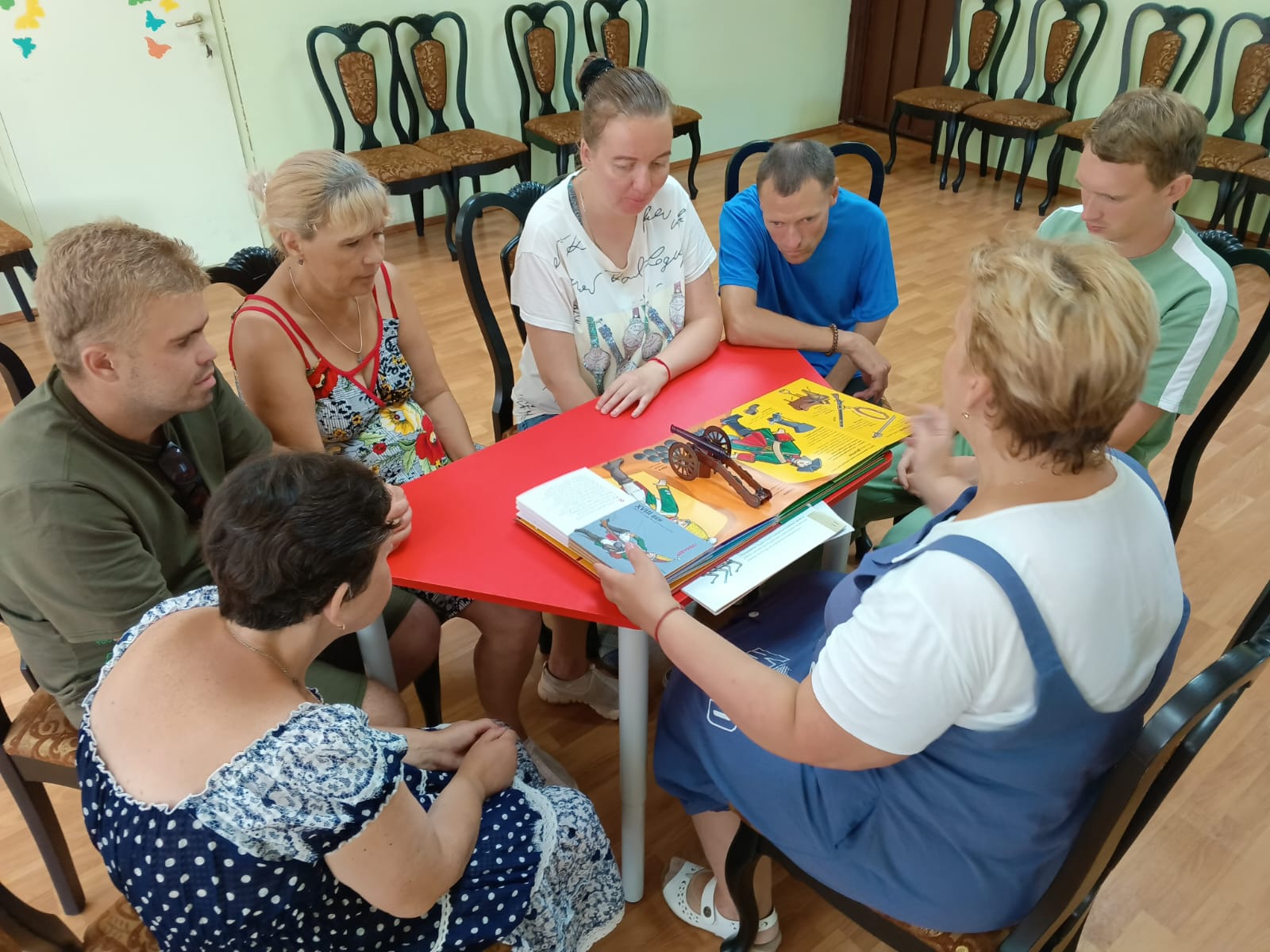 Молодые люди, посещающие отделение социальной реабилитации инвалидов Наволокского комплексного центра социального обслуживания населения, 17 июля вместе с ведущим библиотекарем Кинешемского филиала библиотеки для слепых Мариной Горбачевой совершили экскурс в историю русского военного костюма «От кольчуги до мундира».