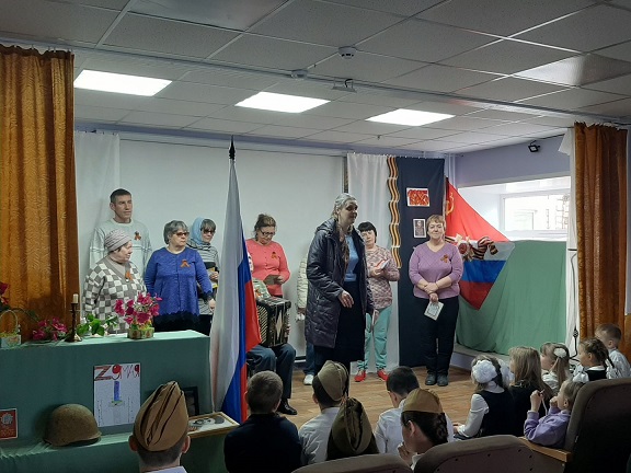 Затем восовцы побывали на конкурсе чтецов, который проходил в Доме культуры с. Ёлнать. Ребята из местной школы читали произведения о Великой Отечественной войне. Подарком для зрителей в этот вечер стало выступление самодеятельного незрячего поэта Натальи Болотовой, в исполнении которой прозвучало стихотворение «Волки». Под аккомпанемент гармони Сергея Сизова исполнили несколько известных песен о войне. Весь зал дружно подпевал «Катюшу» и «Землянку».
