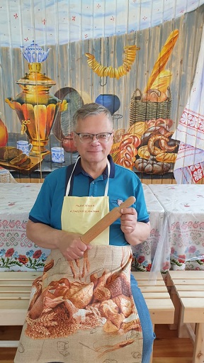 В музее хлеба и Парского калача нас уже ждали. Хозяйка этого гостеприимного дома, отделанного под русскую избу, Елена Калачева, встретила нас радушно и провела мастер-класс по приготовлению калача. Каждый из экскурсантов выбрал по своему вкусу один из способов приготовления и нанес на тесто свои инициалы, чтобы потом, после выпечки, найти свой, неповторимый калач.