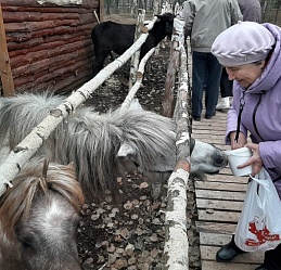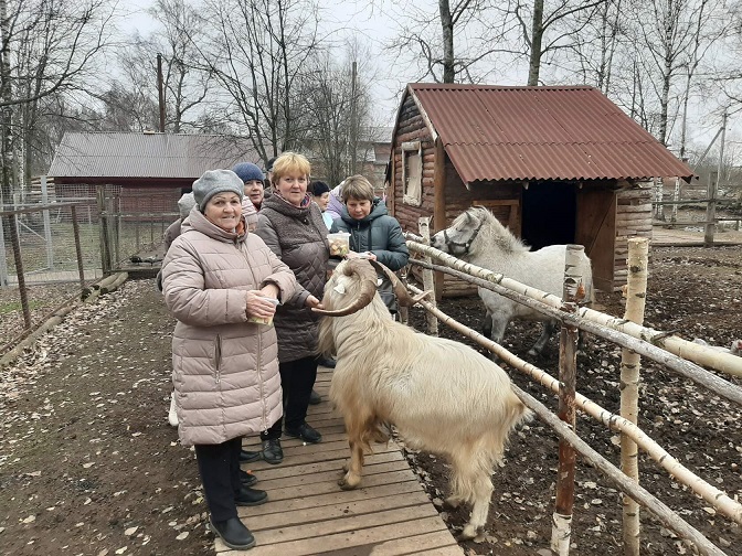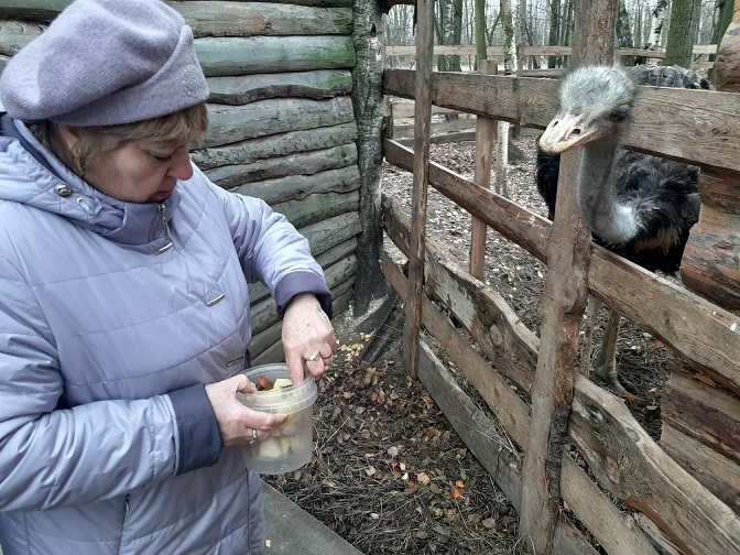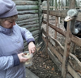 Покормили кроликов и ондатр. В загоне с северными оленями всеобщее внимание привлекла олениха Красава. Полюбовались, как танцуют африканские страусы. Покормили и погладили вездесущих коз и овец.