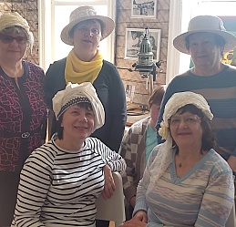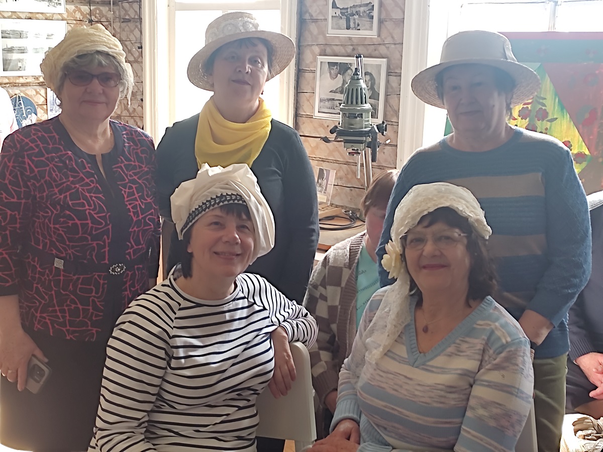 Экскурсанты посмотрели коллекцию одежды «Дневник моей бабушки», посвященную женской половине рода Чемодановых-Кравченко; с удовольствием примерили головные уборы 19 века.