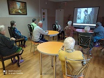 12 ноября в рамках межведомственного взаимодействия с Ивановской областной специальной библиотекой для слепых в Наволокском комплексном центре социального обслуживания населения в отделении временного проживания граждан пожилого возраста и инвалидов прошла виртуальная программа по творчеству композитора Марка Фрадкина "Придёт и к нам любовь". Участники встречи познакомились с прекрасными песнями М. Фрадкина, написанными в соавторстве с известными поэтами-песенниками, а также с интересными фактами жизни композитора