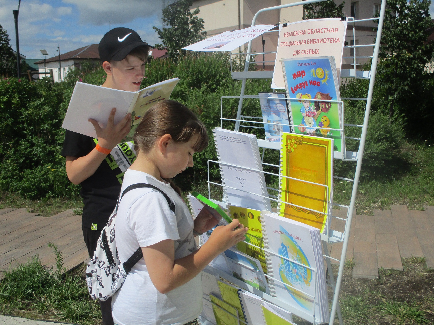 Все участники фестиваля получили подарки от спонсоров, в числе которых и буклеты с логотипом фестиваля и пожеланиями организаторов, подготовленные библиотекой с использованием тифлооборудования.