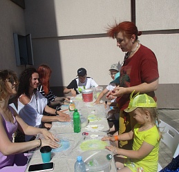 Семейный библиотечный клуб «Родительский лицей» стал активным участником II Фестиваля «Мир возможностей» (организатор фестиваля незрячий читатель библиотеки Ирина Алимовна Яманова при поддержке Администрации Лежневского муниципального района Ивановской области), состоявшегося 6 июля на территории «Рабочего сада» (п. Лежнево) для людей, имеющих инвалидность. География фестиваля: Ивановская область, Московская область, Подмосковье, Кострома. На познавательных и развлекательных площадках проходили различные мастер-классы (валяние, массаж, особенная физкультура, трюковая дрессировка собак-проводников), работала фотозона (фото на память с собакой-проводником), надувные батуты, аквагримм и многое другое.