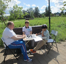 Юный шахматист Умнов Марк играл со знаменитым ивановским незрячим шахматистом Евгением Сусловым.
