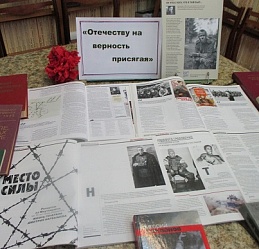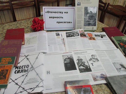 К мероприятию была оформлена книжная выставка «Отечеству на верность присягая». Представленные на ней книги, напомнили читателям о героическом прошлом нашей страны, о славных победах российских войск.