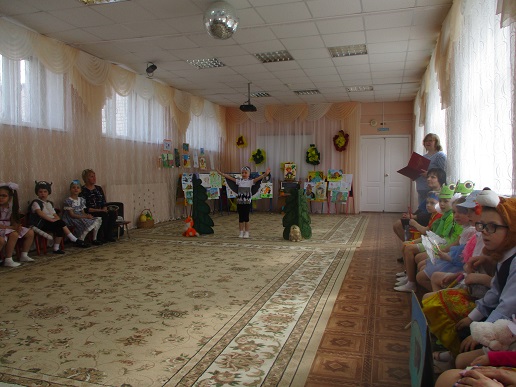В путешествие по сказкам и стихам Сергея Козлова отправились участники фестивального движения, воспитанники детского сада, компенсирующего вид № 182. Знакомство с рисунками, поделками, декламация стихотворений, музыкальные сценки, инсценировки продолжалась в течение часа – столько детей участвовало в фестивале! Мчался по волнам катерок, по небу – белогривые лошадки, мелькали месяцы календаря в «Золотой карусели», лесные зверята рассказывали свои истории и многое другое ещё раз позволило участникам и гостям праздника вспомнить добрые, весёлые произведения С.Г. Козлова.