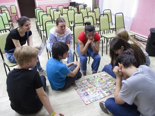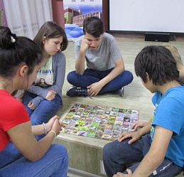 В рамках Всероссийского проекта «Культурный дневник школьника» библиотекой осуществляется цикл мероприятий «Культуру познаю сквозь расстояние и время» в целях содействия формированию духовно-нравственных и культурных ценностей подрастающего поколения. Участниками очередного мероприятия цикла стали подростки отделения реабилитации несовершеннолетних Центра социальной помощи семье и детям «На Московской». В ходе историко-познавательной встречи «Ты тоже родился в России», проведённой на базе Центра 9 июня в преддверии государственного праздника - Дня России 9, с ребятами состоялась беседа о государственных символах России; порадовало то, что ребята имеют представление о флаге, гербе и гимне и охотно участвовали в разговоре о них. Отдельной темой общения стало устное народное творчество, являющееся основой русской культуры. Разбившись на команды, ребята выполнили ряд заданий: отгадывали кроссворд о символах России, посоревновались в знании русских народных сказок и загадок; пополнили свои знания, играя с азартом в познавательную настольную игру «Фото викторина «Прогулка по лесу. 235 интересных фактов» о лесной флоре и фауне средней полосы нашей необъятной родины России.