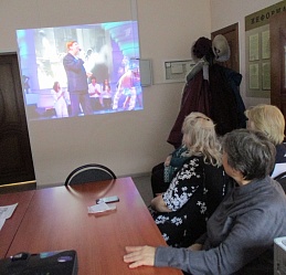 На встрече в клубе активного долголетия «В кругу друзей», состоявшейся 10 марта, сотрудник группы стационарного обслуживания Надежда Чихачёва провела музыкальный час «Человек рождается для счастья».