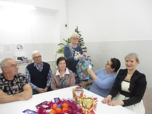 Нарядная ёлка, зажжённые огни, накрытые для традиционного чаепития столы и тихое звучание новогодних и рождественских мелодий – всё это создавало ощущение доброй праздничной атмосферы. Приятной новостью в канун Нового года стало вручение участникам клуба и активистам местной организации новогодних подарков.