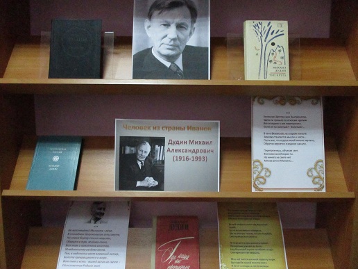 К 105- летию со дня рождения известного российского поэта, уроженца Ивановской области Михаила Александровича Дудина (1916-1993) библиотекой подготовлена книжная выставка «Человек из страны Иванов».