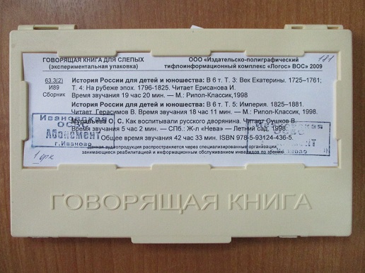 Среди изданий, напечатанных рельефно-точечным шрифтом, представлены: