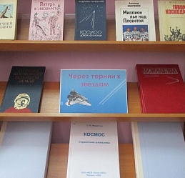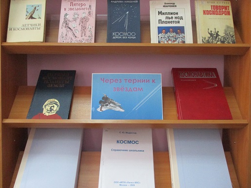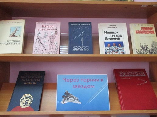 В преддверии Всемирного дня авиации и космонавтики, отмечаемого 12 апреля, в библиотеке оформлена книжная выставка «Через тернии – к звёздам». Именно в этот день на земную орбиту впервые был выведен космический корабль–спутник, на борту которого находился советский лётчик-космонавт Юрий Гагарин
