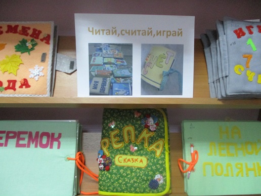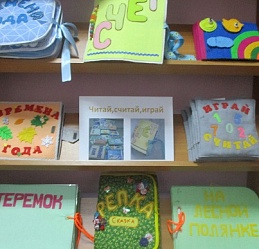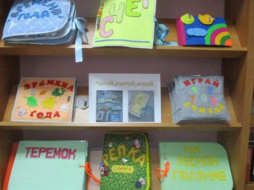 Библиотекой подготовлена выставка тактильных-рукодельных книг «Читай, считай, играй», на которой представлена небольшая часть книжного фонда данного вида издания.