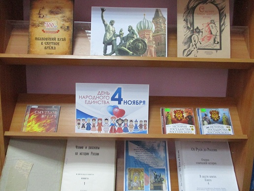Ко Дню народного единства, государственного праздника, учреждённого в 2005 году в память о событиях 1612 года, когда народное ополчение под предводительством Кузьмы Минина и Дмитрия Пожарского освободило Москву от польских интервентов, библиотекой подготовлена выставка литературы о Смутном времени, в годы которого состоялась не только русско-польская война.